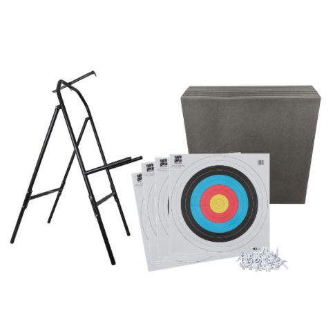 Klaar om te schieten? Met dit pakket zeker! Bestaande uit een doelpakhouder, doelpak, 4 blazoenen en bijbehorende blazoennagels.
