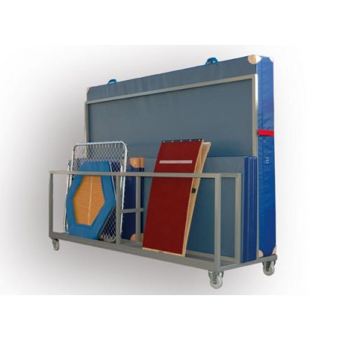 De Raxx Mattenwagen Deluxe heeft met zijn formaat genoeg opbergmogelijkheden voor de meest gangbare gymonderdelen.Simpelweg deze mattenwagen uit de berging rijden en je hebt gelijk een valmat, turnmatten tot je beschikking. Verder heeft de mattenwagen ook nog de mogelijkheid tot het opbergen van bijv. springplanken, minitrampolines of tchouks.